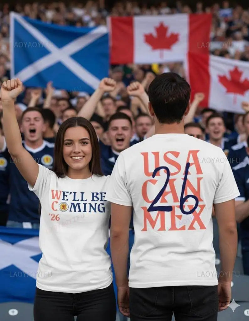 The NINTEY+ “We’ll Be Coming ’26” Tartan Army Fan T-Shirt is made for Scotland supporters who travel with the game. Featuring a bold front statement and a clean back print referencing the 2026 hosts, this tee captures the confidence, anticipation, and spirit of the Tartan Army.