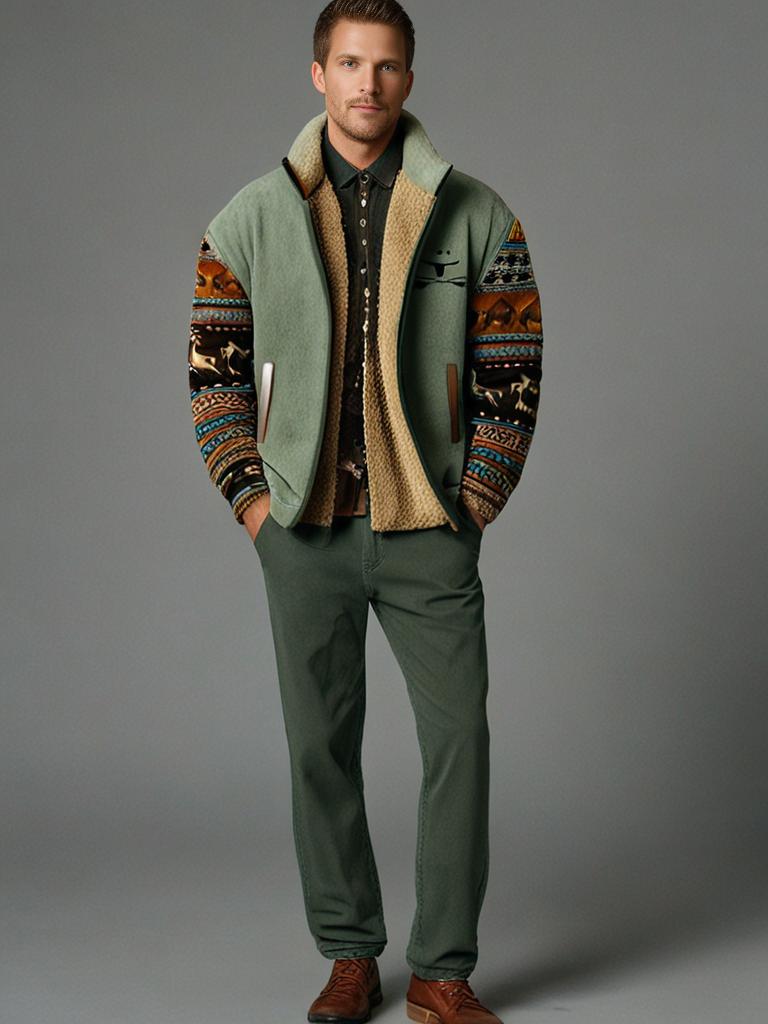 Affronta il freddo con stile con la Giacca Sherpa Claudio, il perfetto connubio tra comfort, resistenza ed estetica unica. La fodera in pile caldo garantisce un isolamento ottimale nelle giornate più fredde, mentre la stampa tribale distintiva aggiunge un tocco audace alla tua personalità.